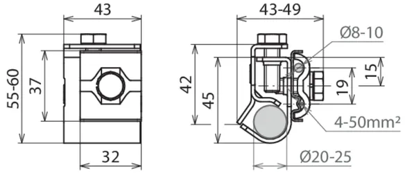 | Clamping range (stranded / cable) | 25-120 mm2 |
