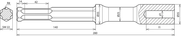| Adapter | hexagon, wrench size 28 x 160 mm |