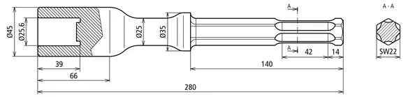 | Adapter | hexagon, wrench size 22 x 108 mm |