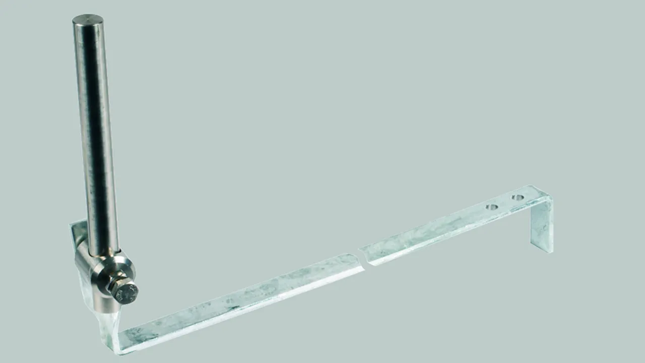 Rod holder for steep roofs Rod holder for steep roofs as base for fixing air-termination rods on steep roofs, with anti-rotation protection. At the chimney, the air-termination rod requires additional fixing e.g. by means of DEHNiso spacer.
