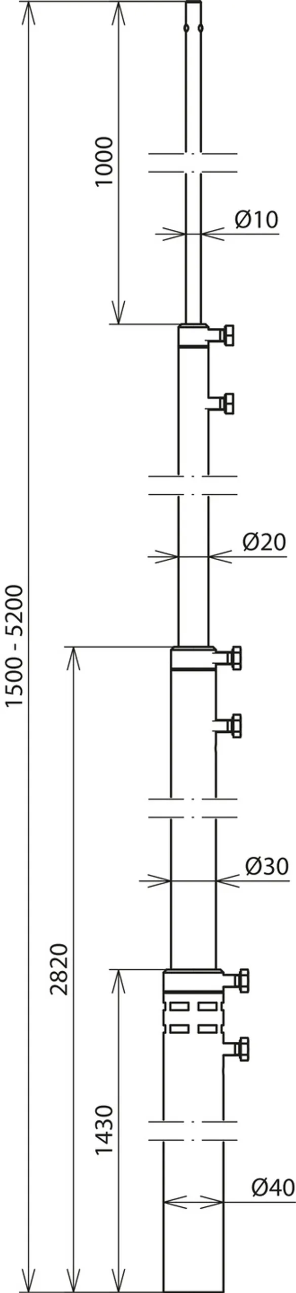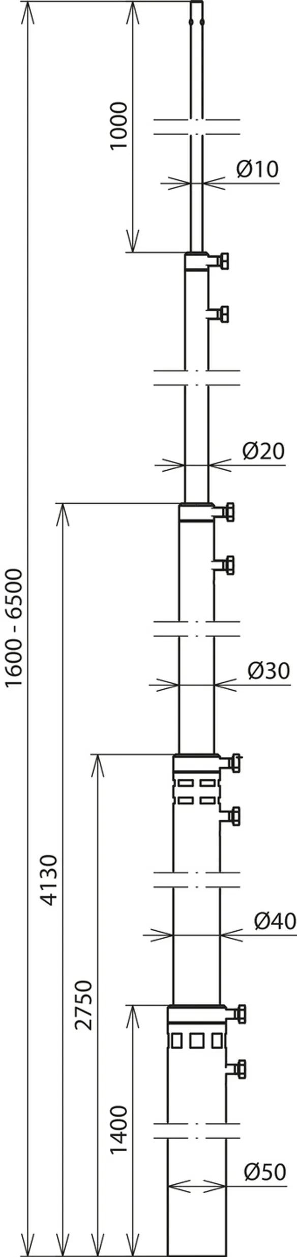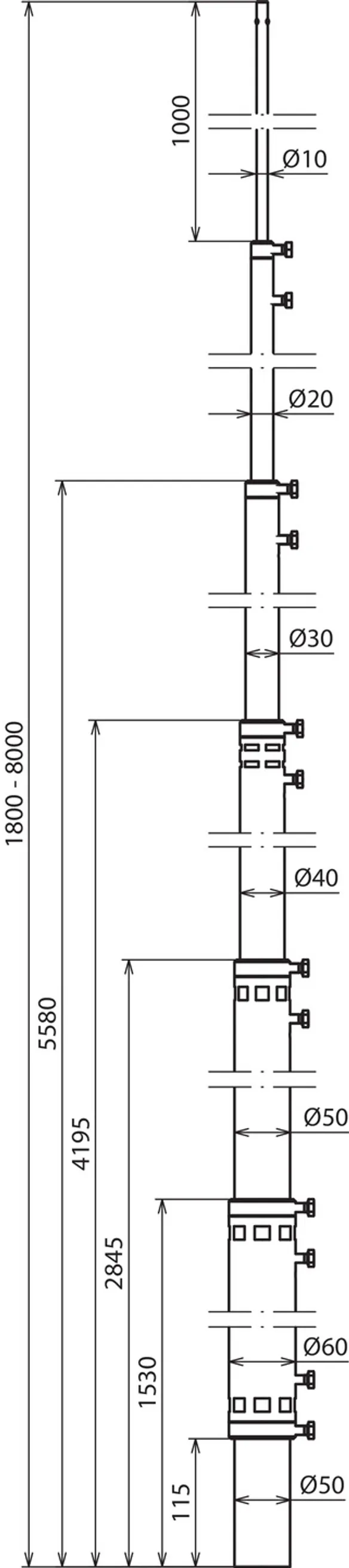 | Termination mast (Ø length) | 50/60/50/40/30/20-7000 mm |