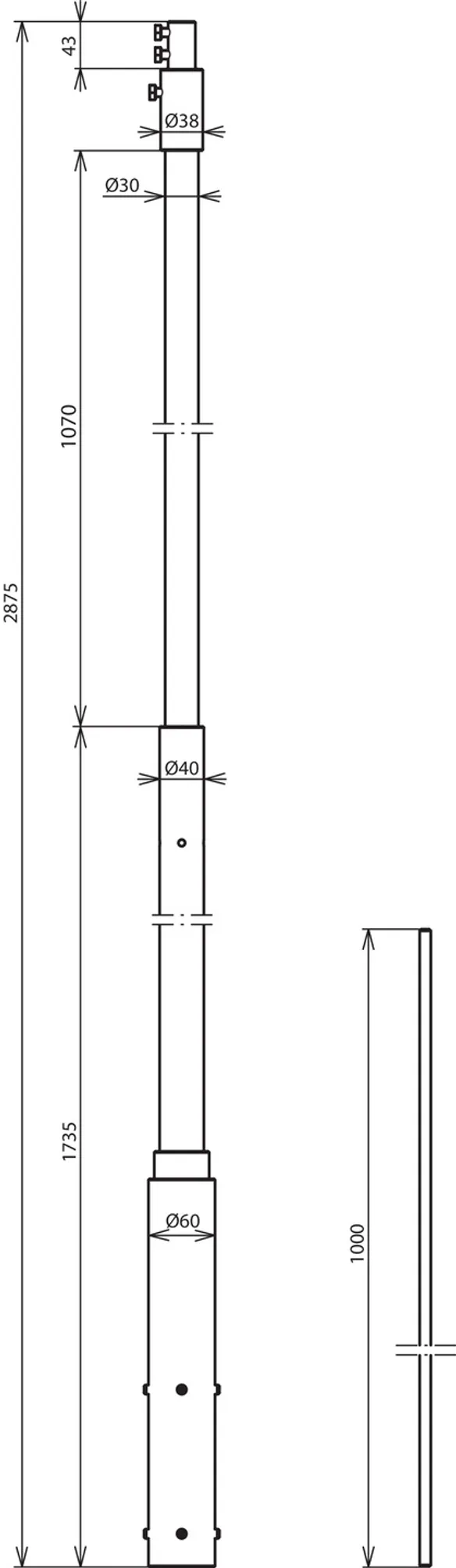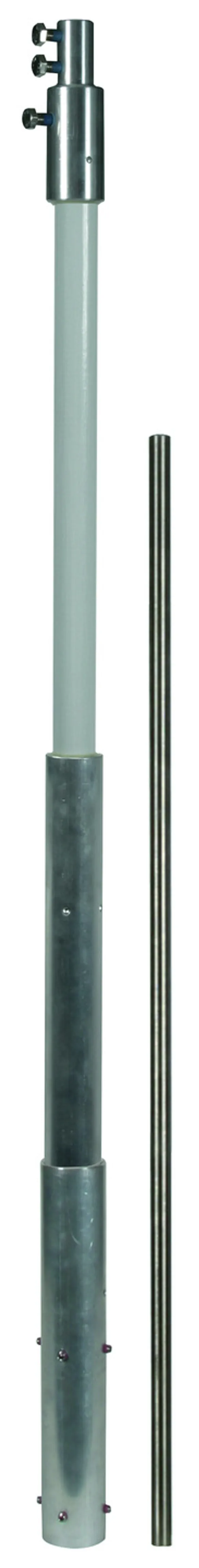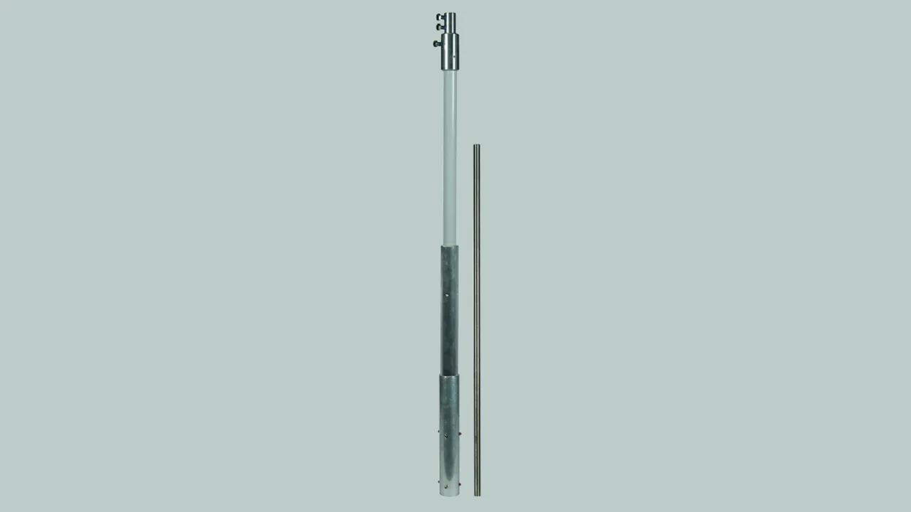 DEHNcon-H supporting tube for HVI light Conductor with air-termination tip 1000 mm, GRP/Al GRP/Al supporting tubes with internal sealing end for the HVI light Conductor for maintaining the separation distance to electrically conductive parts as per DIN EN 62305 (VDE 0185-305-3). The supporting tubes are dimensioned to Eurocode 1 (DIN EN 1991-1-4 + DIN EN 1991-1-4/NA) for a max. gust wind speed of 149 km/h. Insulating clearance made of glass-fibre reinforced plastic (GRP) Material factor km = 0.7 Light grey colour, UV-stabilised, one-piece Combined with air-termination tip, Ø10 mm, length 1000 mm, StSt